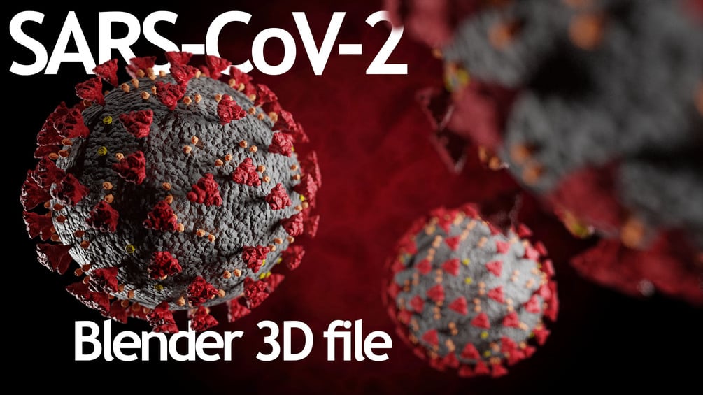 A 3d model, in blender inspired by the electron micrograph of the virus. It includes a section of the virus with ARN. The model is procedural and can be modified as needed.